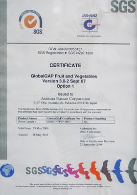 「グローバルギャップ認証」。それは、安全な農業に関する国際基準。当社の農園は日本で3番目にこの認証を受けました。この認証を受けるためには、総合的穀物管理(ICM)、総合的有害生物管理(IPC)、品質マネジメントシステム(QMS)、危害分析および重要管理点(HACCP)、労働者の衛生、安全、福祉、並びに環境汚染および保全管理などの基準をクリアーしなくてはいけません。