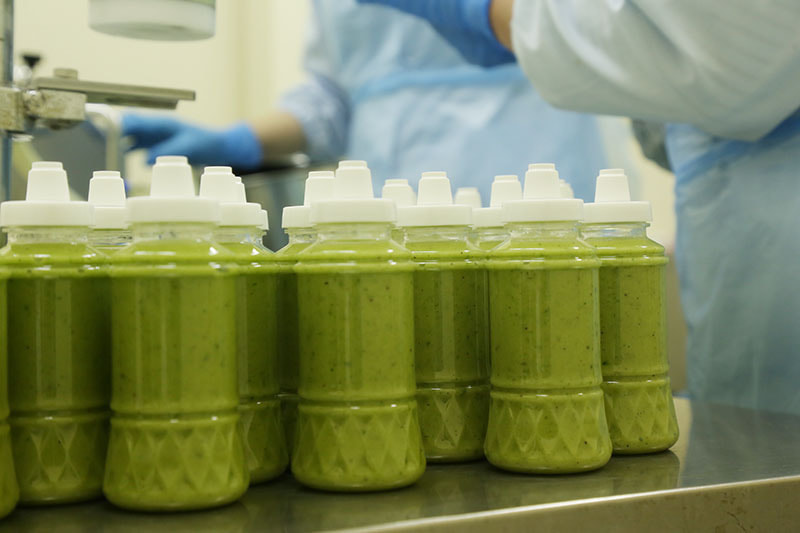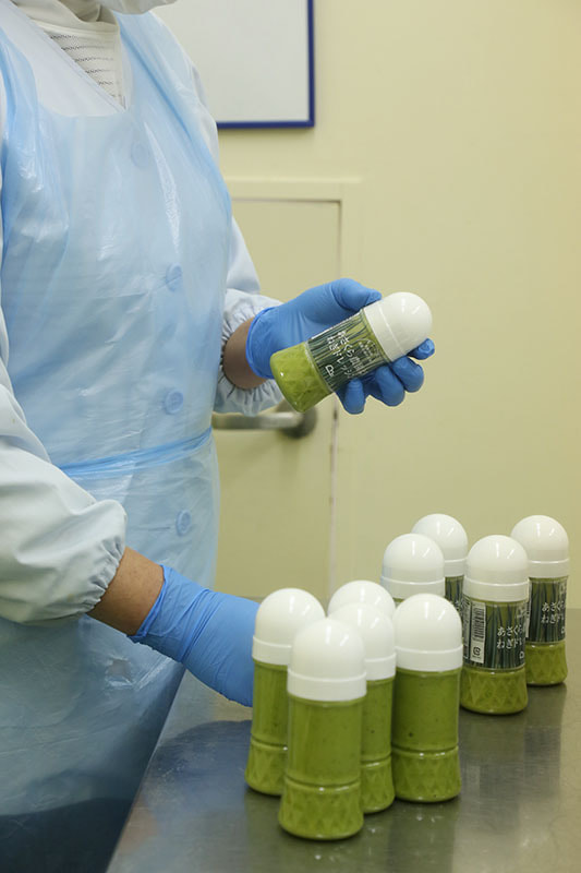 よく混ざり合わさりましたら、ボトル詰めです。1本、1本、丁寧詰めていきます。ラベルを貼って出来上がりです。